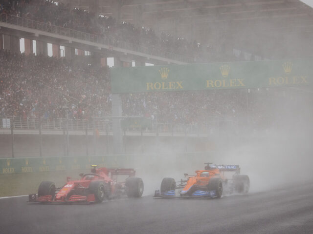 وواجه الجميع إثر ذلك ظروفًا صعبة تمثّلت في بقاء الحلبة رطبة بشكلٍ يحول للانتقال إلى الإطارات الملساء، لكنّ إطارات “انترميديت” كانت تتآكل بسرعة.