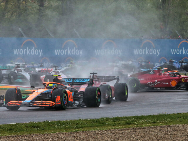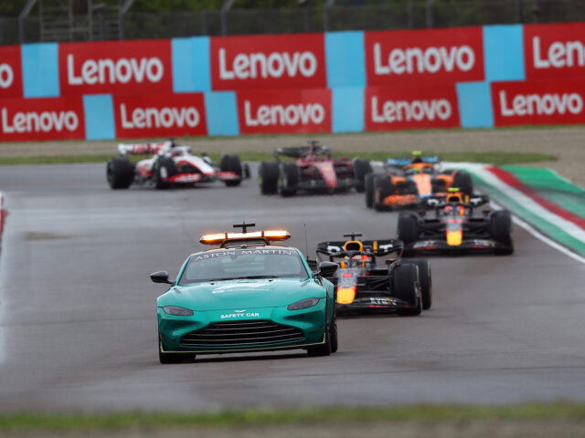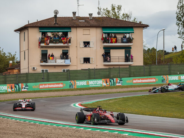 أصطبغت المدرجات باللون الأحمر، واحتشد أكثر من 60 ألف معجب في إيمولا مع احتفال تيفوسي الشغوف بسباق الفورمولا وان الذي أقيم مع المعجبين في المنزل الروحي لفيراري منذ عام 2006. ومع ذلك ، لم تدم هذه الاحتفالات طويلاً ، وجاءت المعركة المبكرة بين ساينز وريكاردو وضعت الإسباني في المقدمة من اللفة الأولى. وانطلق فيرستابين في بداية مثالية على الحلبة المبتلة، وبدأت جميع السيارات بإطارات وسط للحلبات المبتلة. عانى لوكلير في السيطرة على سيارته والخروج عن المضمار، مما منح بيريز فرصة للانتقال إلى المركز الثاني، مع بداية مشجعة مبكرة للاندو نوريس أيضًا. وبقيت مراكز المقدمة على حالها، حتى بعد جولة توقف في اللفة 19، والتي تحول فيها الجميع إلى الإطارات الجافة. بقي فيرستابين مرتاح تمامًا في المقدمة، كما فعل بيريز، على الرغم من تعرضه لضغوط عرضية من لوكلير. وفي اللفة 51 ، قرر سائق فيراري التوقف للحصول على إطارات جديدة على أمل أن يتمكن من الخروج والاحتفاظ بمركزه، مع فرصة الحصول على نقطة أسرع لفة. ومع ذلك، حدث خطأ في اللفة 54 خرج على اثره من المضمار واصطدم بالحاجز الجانبي وتطلب وقفة صيانة إضافية لتغيير الجناح أالمامي. عاد في المركز التاسع وتعافى إلى حد ما ليحتل المركز السادس. لقد كان يومًا صعبًا بالنسبة لفيراري، بعد أن كانت توقعات الجماهير مرتفعة بشكل لا يصدق.