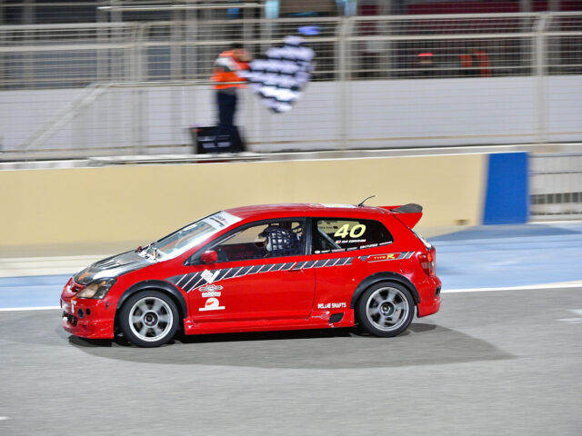 He then went on to take the chequered flag in the opening BTCC sprint, which he completed in 21:53.775 after 15 laps. Ebrahim finished 1.600s ahead of the Radio Bahrain entrant competing in a Honda Integra, while Ali Baqer came third more than a minute behind, also in a Civic. Baqer was also triumphant in the BTCC junior category.