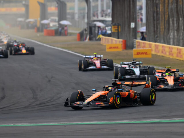 Under cloudy conditions for the start of the race on Sunday, McLaren produced a masterclass off the start line. Piastri led off and squeezed Russell into turn one. This gave some space for Norris to breeze through the gap into second. The top three remained as they were heading into the end of the first stint, with the McLaren cars having a five second gap at the front. The first pit stops began around lap 13, with Verstappen and Hamilton coming in on lap 14. Russell and Piastri then followed, with Norris a lap behind that. This initially gave Russell race position ahead of Norris, but a clean overtake from the Englishman brought him back to second. Following this, Russell was holding on reasonably well to the pace at the front, as were the two Ferrari’s.