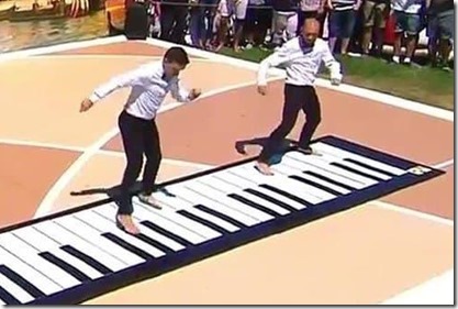 The Piano a Pieds boasts a huge handmade keyboard installed on the floor and played with the feet by two incredibly talented dancers. An innovative show that combines music and dance, it generates a great impact and the audience is completely involved. Following the performance, everyone is welcome to play some tunes on the Piano or to just have a musical walk on the keyboard.